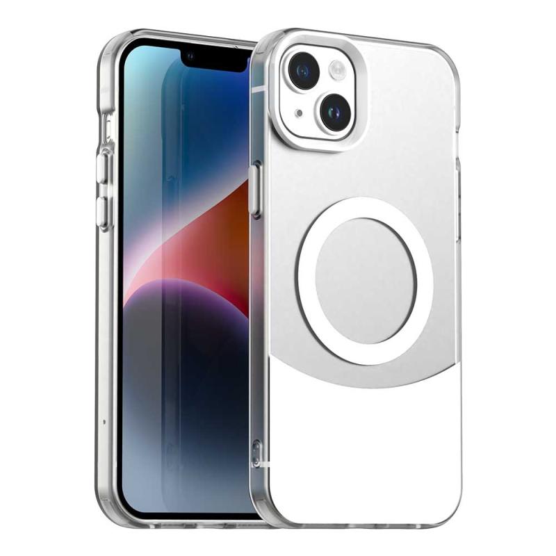 For iPhone 13 Color Blocking Series MagSafe Magnetic PC Hybrid TPU Phone Case(White)