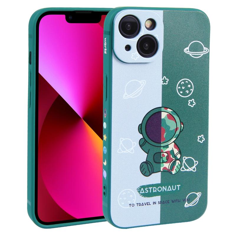 For iPhone 13 Color Contrast Astronaut Pattern TPU Phone Case(Green)