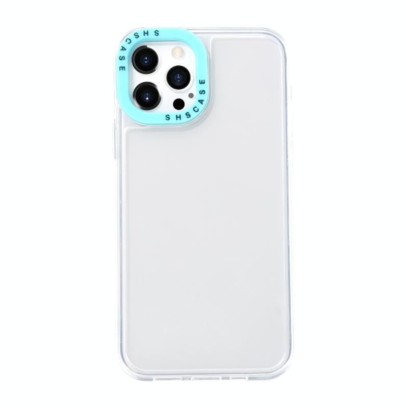 For iPhone 13 Color Contrast Lens Frame Transparent TPU Phone Case(Transparent + Sky Blue)