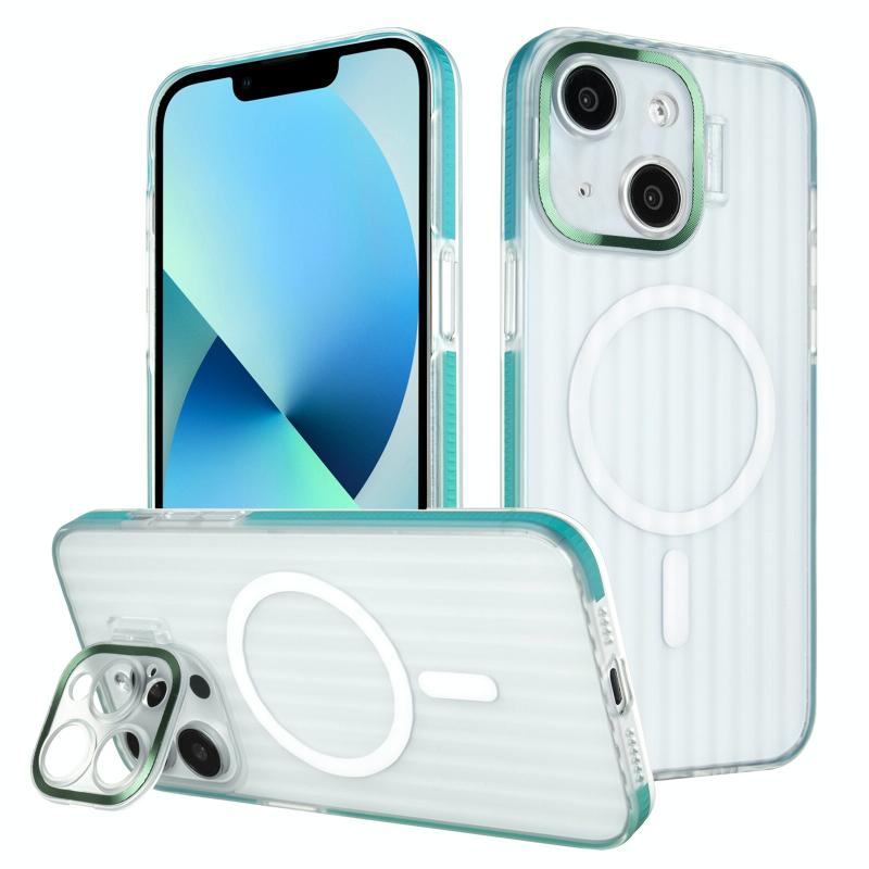 For iPhone 13 Color Edge Lens Holder MagSafe Magnetic Phone Case(Blue)