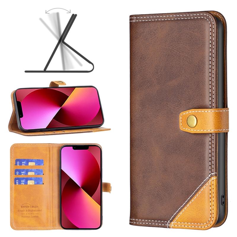 For iPhone 13 Color Matching Double Sewing Thread Leather Case mini(Brown)