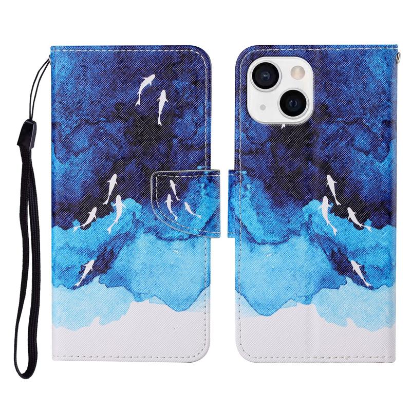 For iPhone 13 Colored Drawing Pattern Horizontal Flip Leather Phone Case(Watercolor Fish)