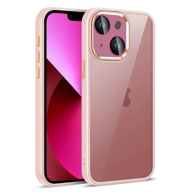 For iPhone 13 Colorful Armor Lens Film Translucent Phone Case(Pink)