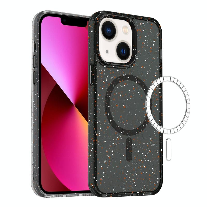 For iPhone 13 Colorful Ink-splash Magsafe PC Hybrid TPU Phone Case(Black)