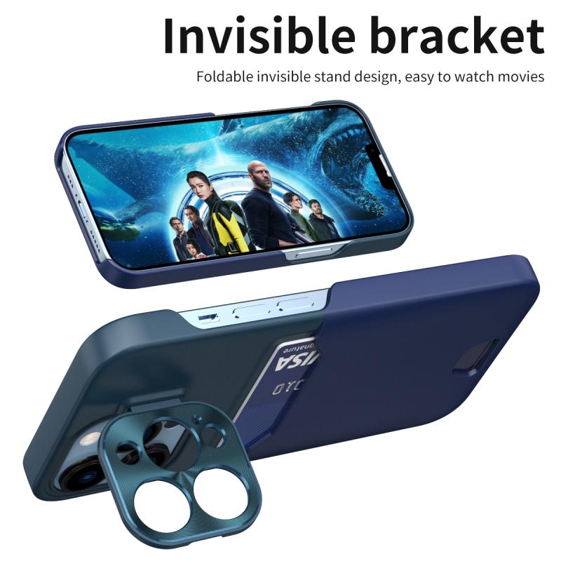 For iPhone 13 Contrasting Colors Invisible Holder Phone Case(Sapphire Green)