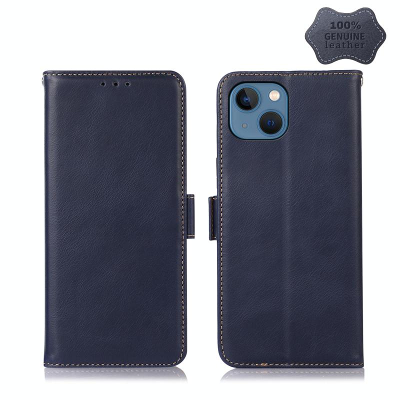 For iPhone 13 Crazy Horse Top Layer Cowhide Leather Phone Case(Blue)
