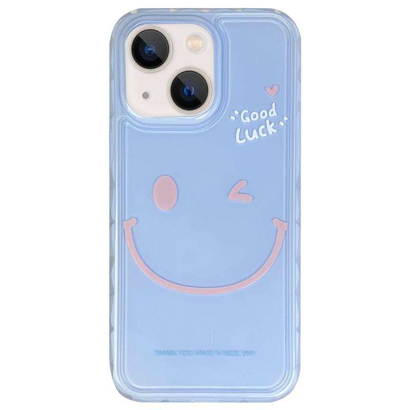 For iPhone 13 Creative Edge Simple Smile Face Pattern TPU Hybrid PC Phone Case(Blue)