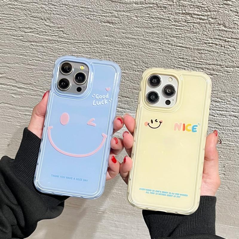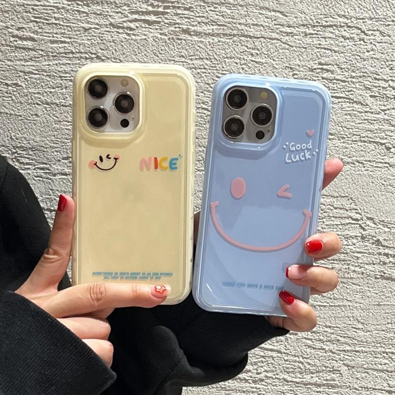 For iPhone 13 Creative Edge Simple Smile Face Pattern TPU Hybrid PC Phone Case(Yellow)