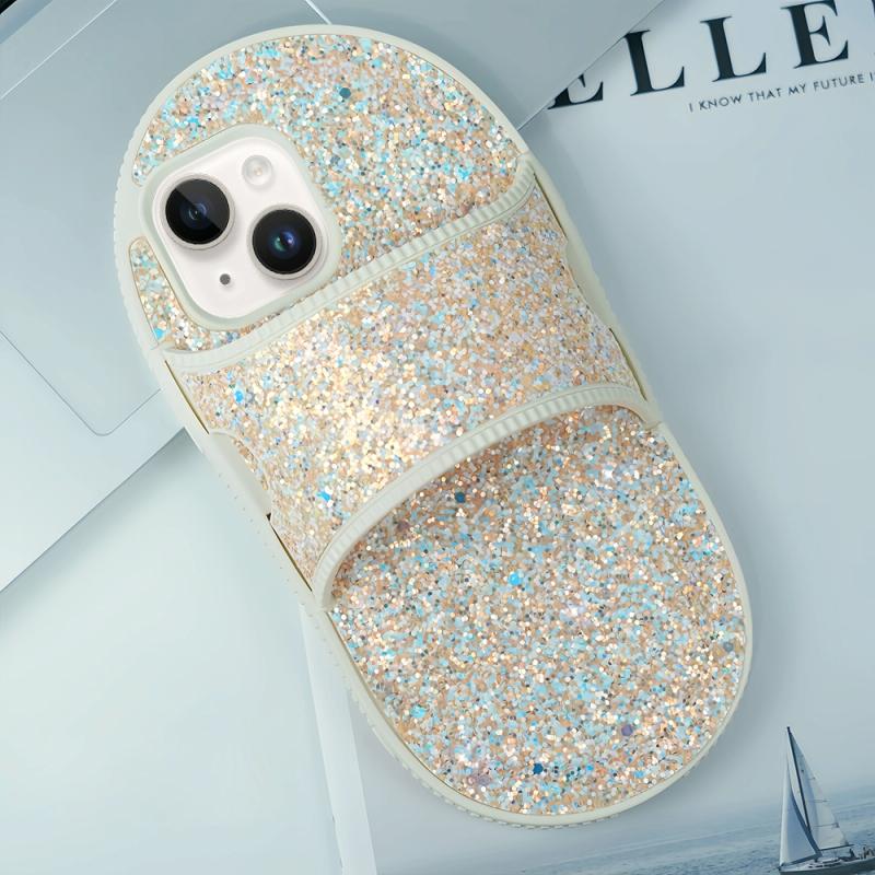For iPhone 13 Creative Glitter Slipper Design TPU Shockproof Phone Case(Gold)