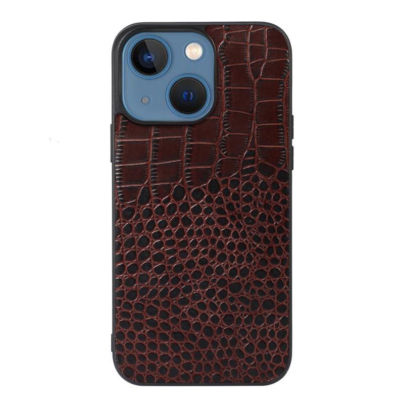 For iPhone 13 Crocodile Top Layer Cowhide Leather Case(Coffee)