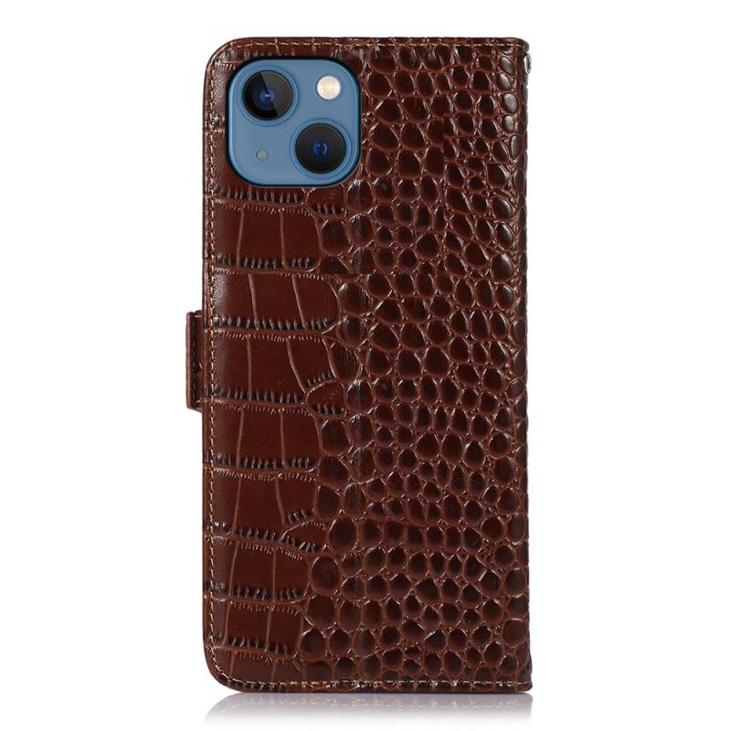 For iPhone 13 Crocodile Top Layer Cowhide Leather Phone Case(Brown)