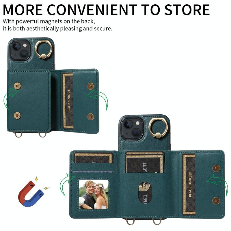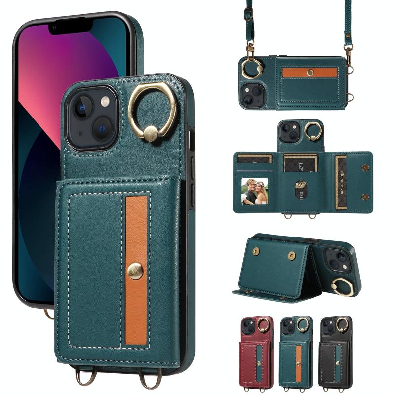 For iPhone 13 Crossbodys Card Bag Ring Holder Leather Phone Case(Green)