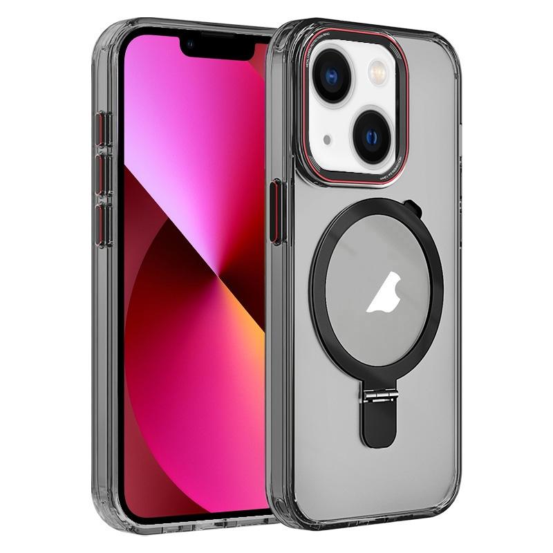 For iPhone 13 Crystal TPU Hybrid PC MagSafe Holder Phone Case(Transparent Black)
