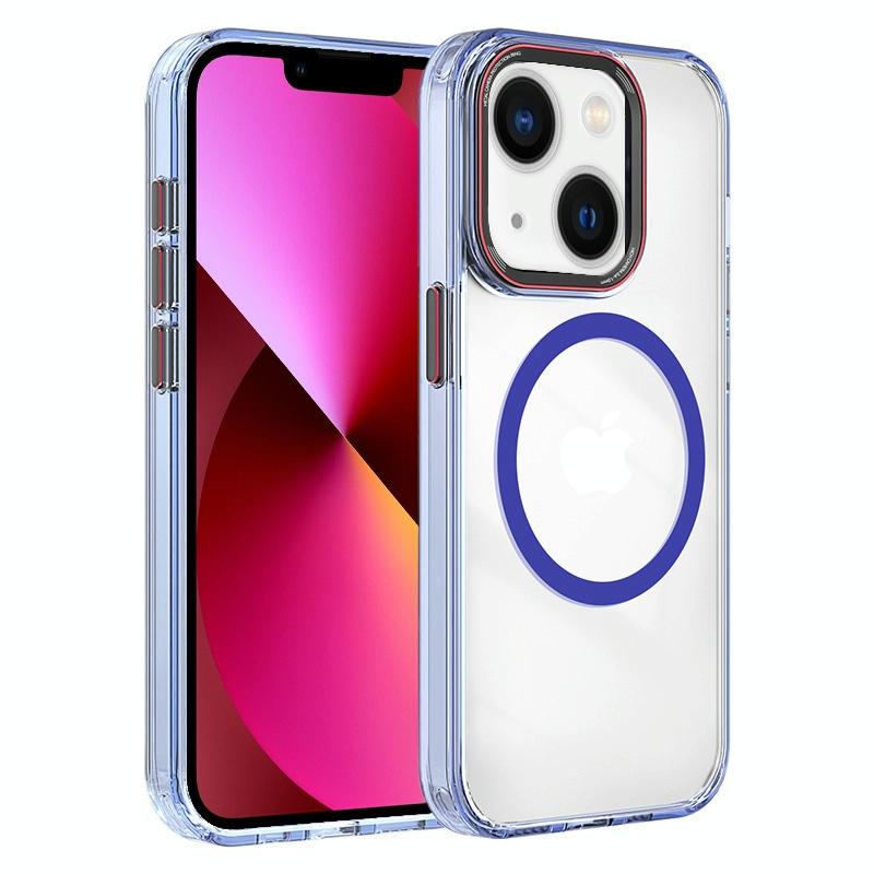 For iPhone 13 Crystal TPU Hybrid PC MagSafe Phone Case(Transparent Blue)