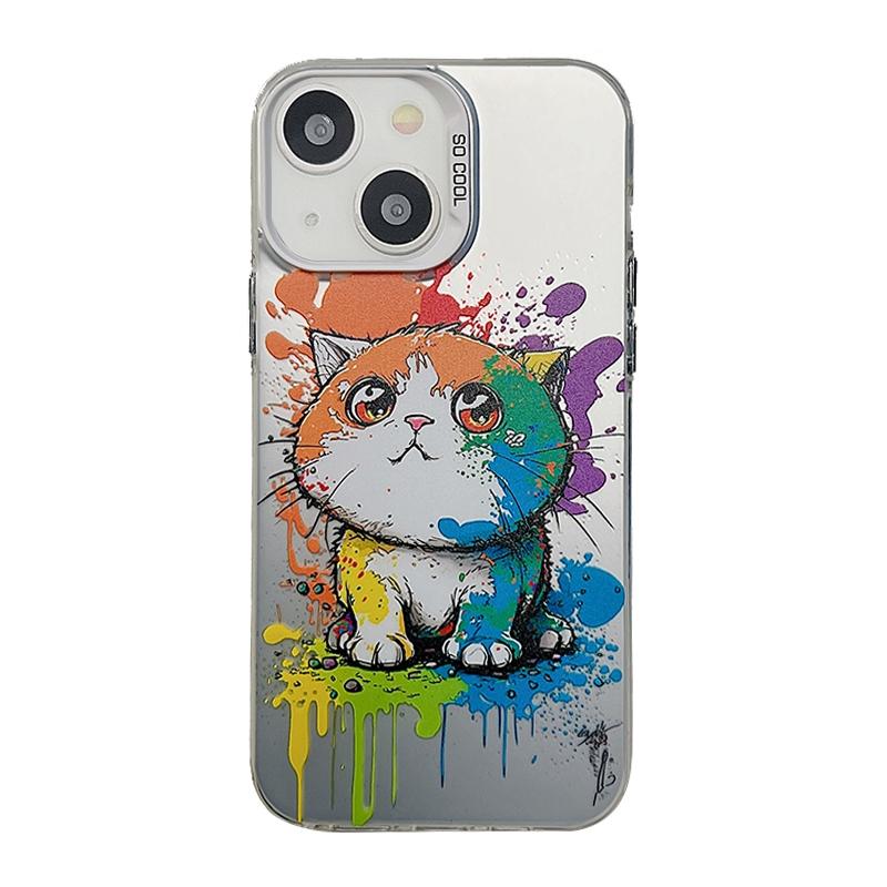 For iPhone 13 Cute Animal Pattern Series PC + TPU Phone Case(Looking Up Fat Cat)