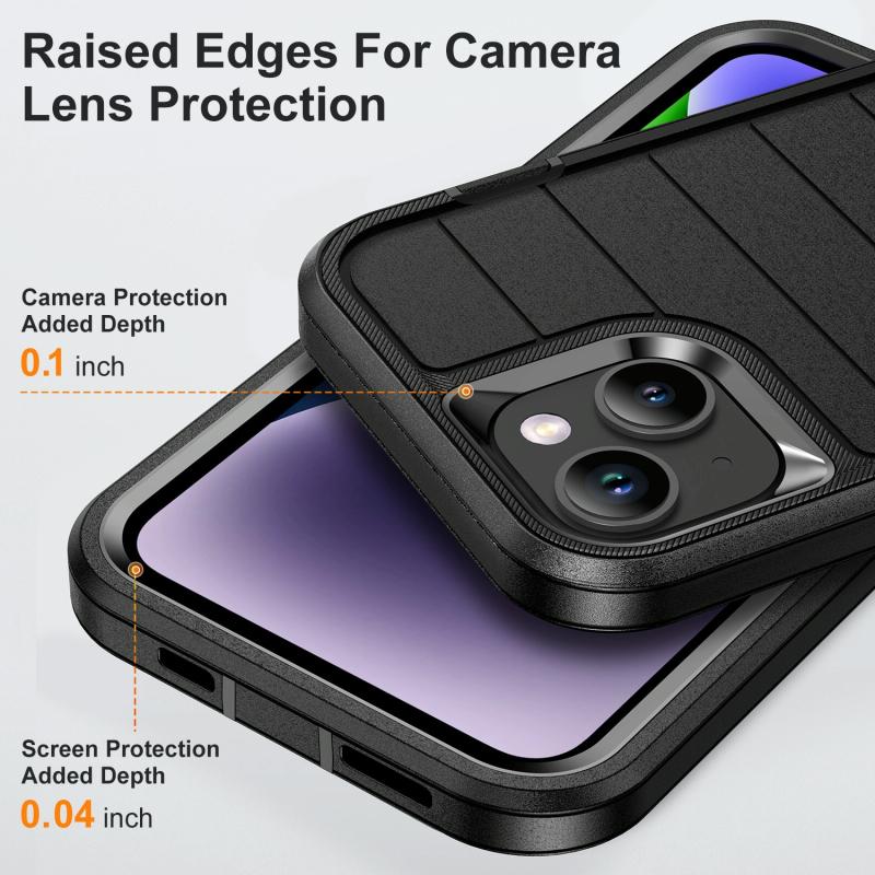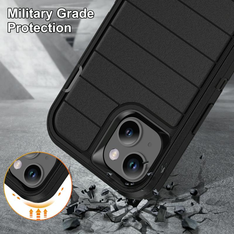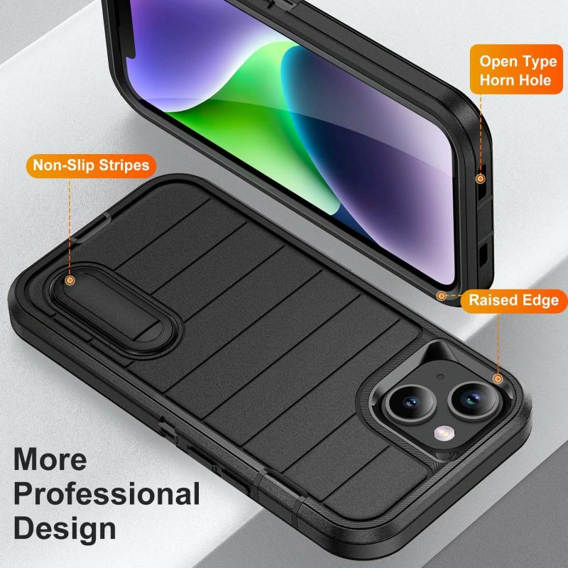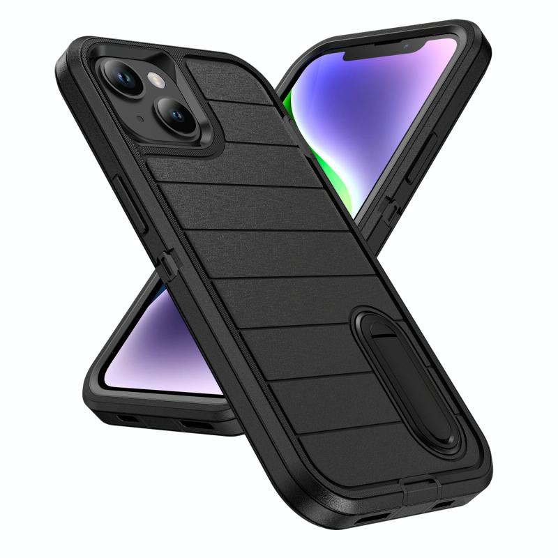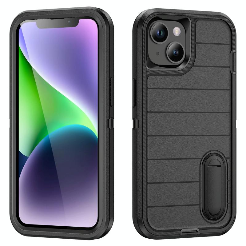 For iPhone 13 Defender Gen2 Rugged PC + Silicone Phone Case with Holder(Black)