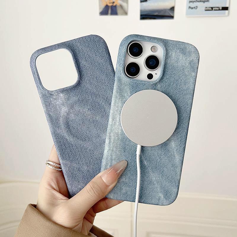 For iPhone 13 Denim MagSafe Magnetic PC + PU Phone Case(Dark Blue)
