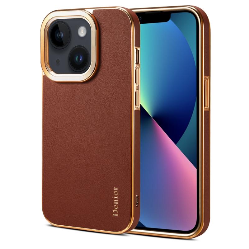 For iPhone 13 Denior Cowhide Leather Plating Phone Case(Brown) (Denior)