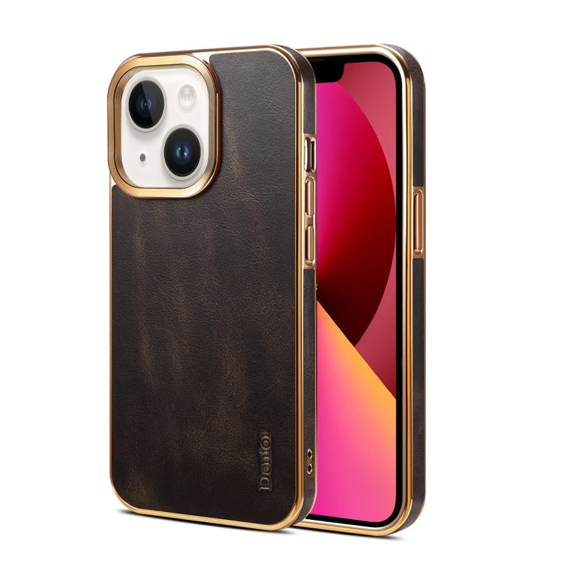 For iPhone 13 Denior Oil Wax Cowhide Plating Phone Case(Black) (Denior)