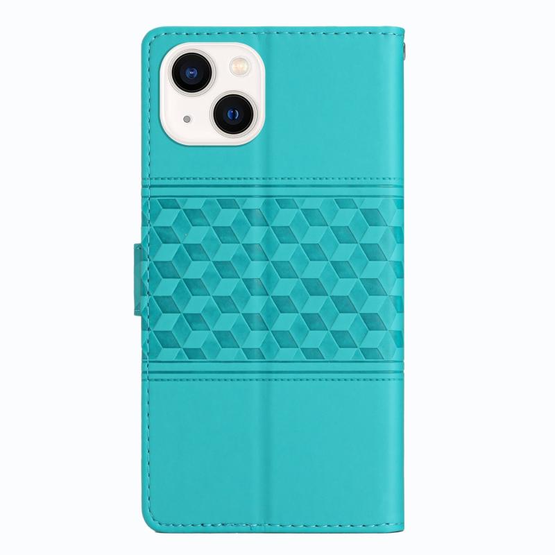 For iPhone 13 Diamond Embossed Skin Feel Leather Phone Case with Lanyard(Blue)