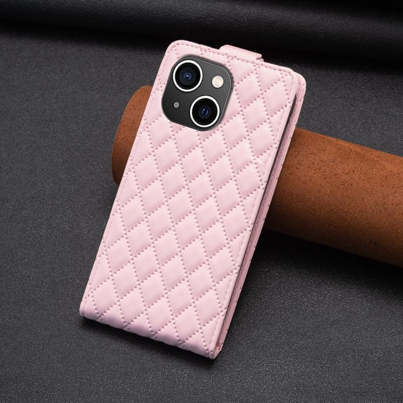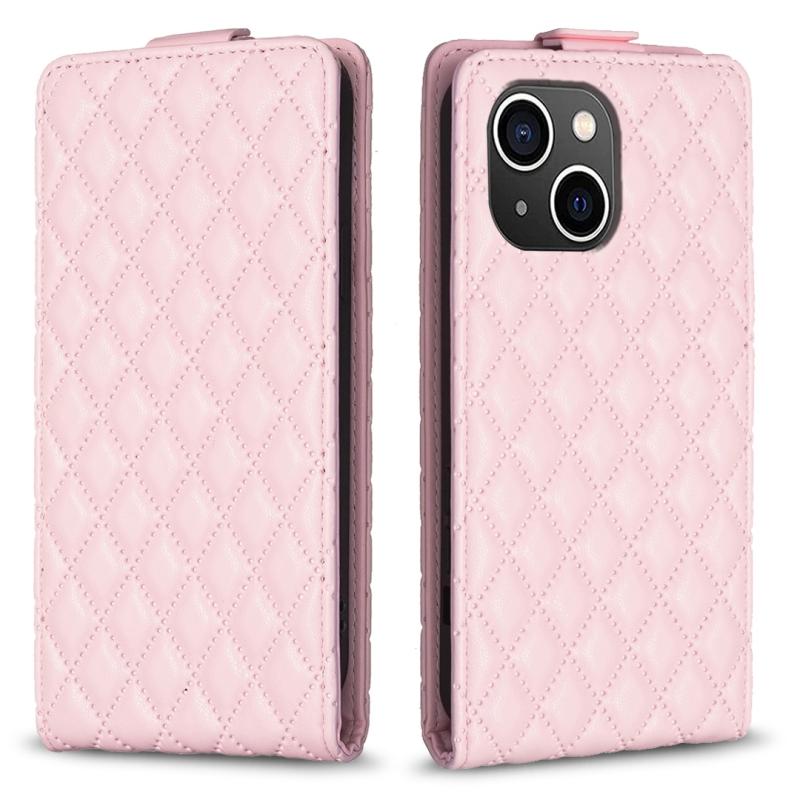 For iPhone 13 Diamond Lattice Vertical Flip Leather Phone Case(Pink)