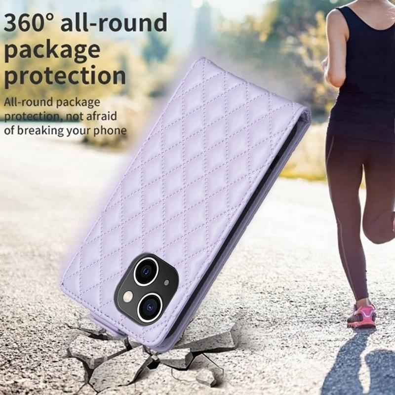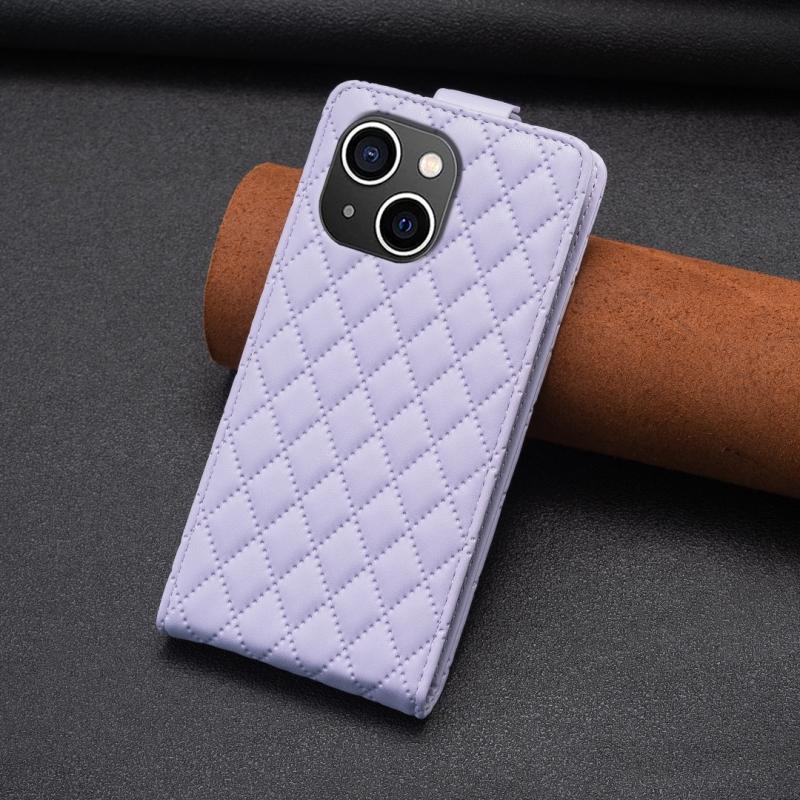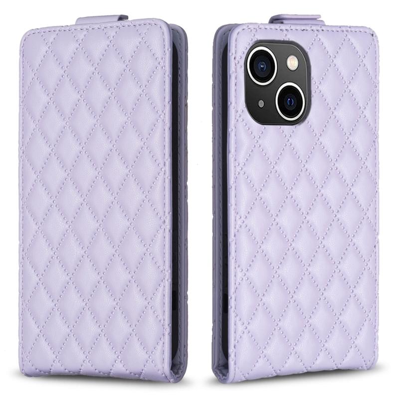 For iPhone 13 Diamond Lattice Vertical Flip Leather Phone Case(Purple)