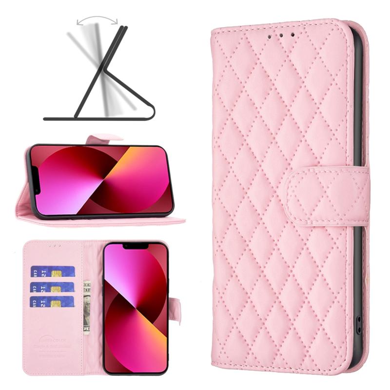 For iPhone 13 Diamond Lattice Wallet Leather Flip Phone Case(Pink)