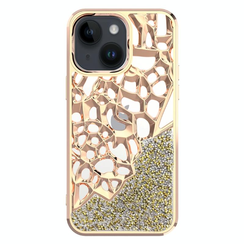 For iPhone 13 Diamond Style Hollow Heat Dissipation Electroplated TPU Phone Case(Gold)