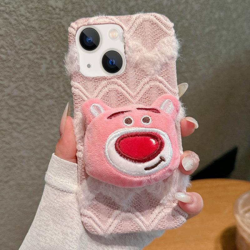 For iPhone 13 Doll Plush PU Hybrid PC Phone Case(Pink)