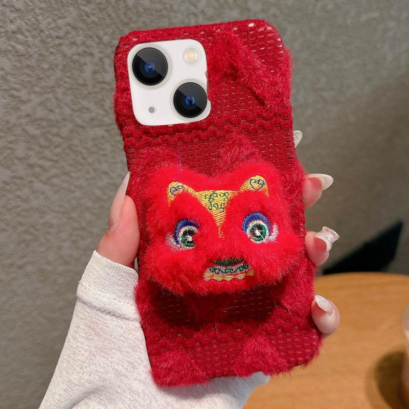 For iPhone 13 Doll Plush PU Hybrid PC Phone Case(Red)