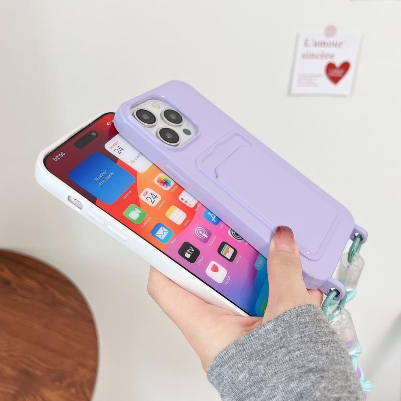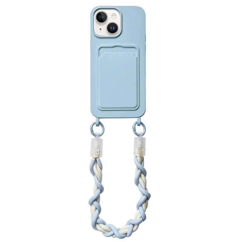 For iPhone 13 Dopamine Card Slot Phone Case with Lanyard(Blue)
