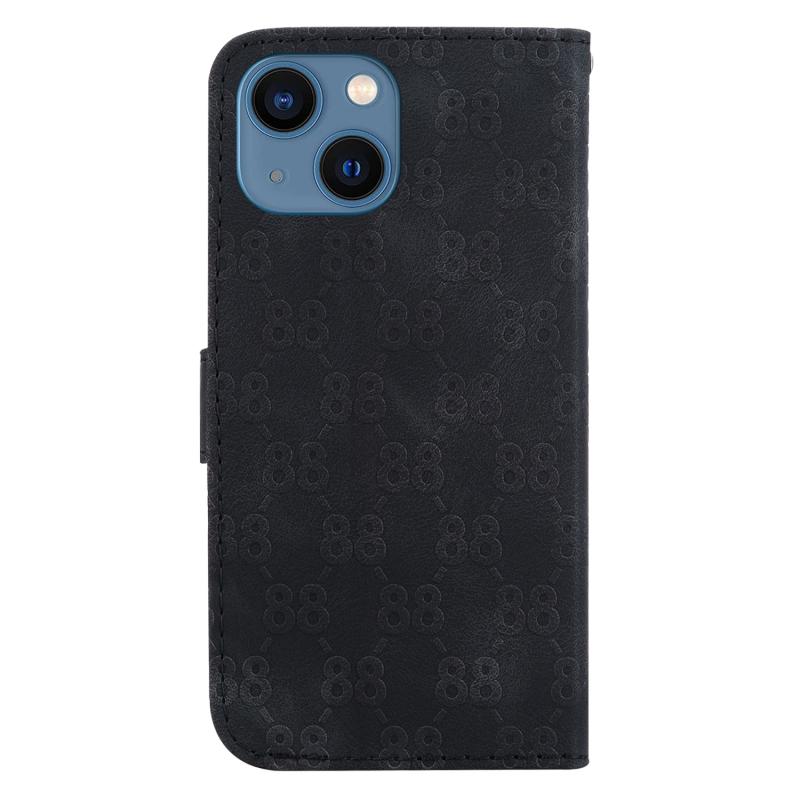 For iPhone 13 Double 8-shaped Embossed Leather Phone Case(Black)