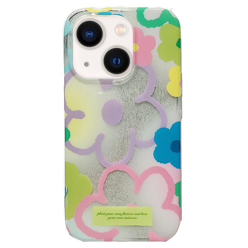 For iPhone 13 Double Sided IMD Full Coverage TPU Phone Case(Hook Line Purple Pink Flowers)