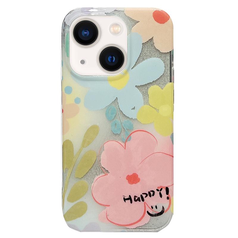 For iPhone 13 Double Sided IMD Full Coverage TPU Phone Case(Pink Blue Flowers)