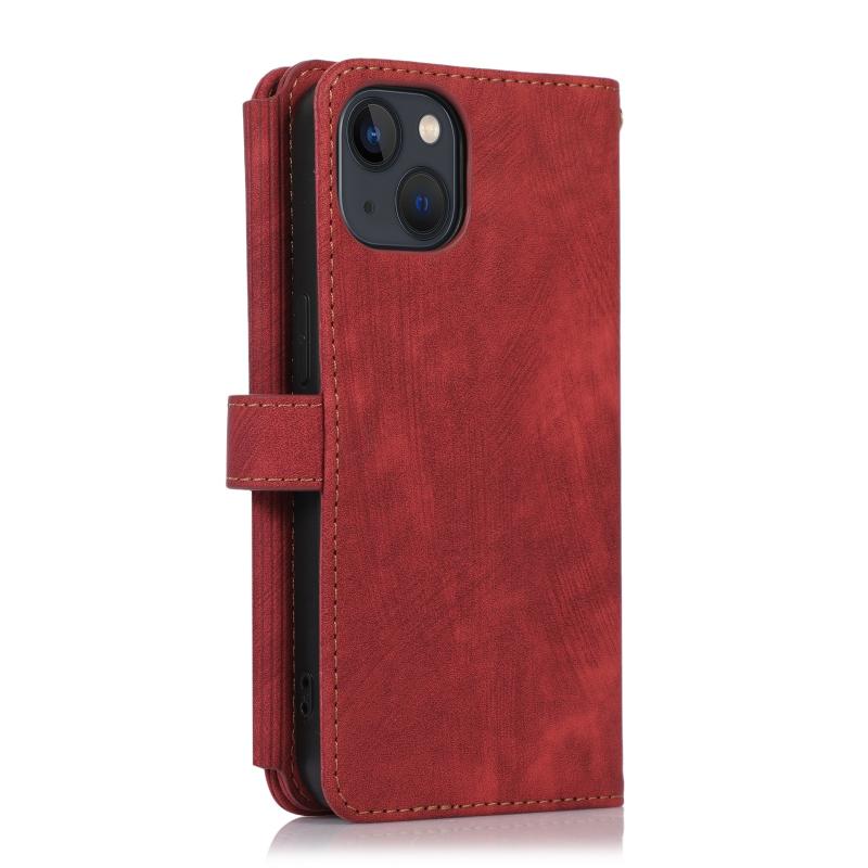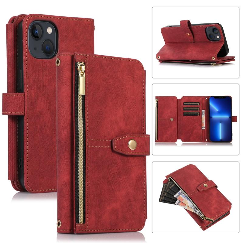 For iPhone 13 Dream 9-Card Wallet Zipper Bag Leather Phone Case(Red)