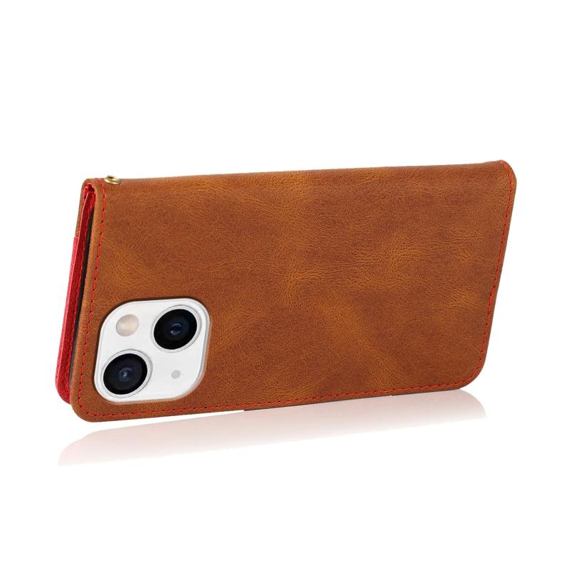 For iPhone 13 Dual-color Stitching Leather Phone Case(Brown Red)
