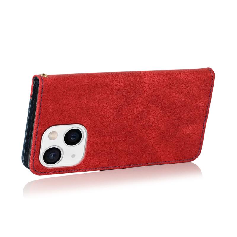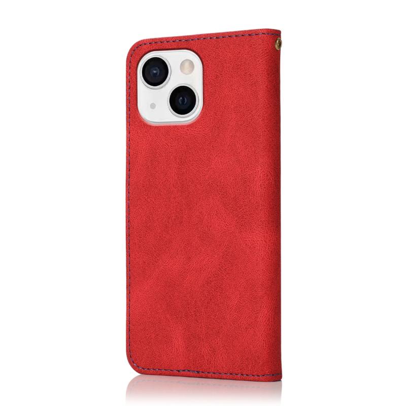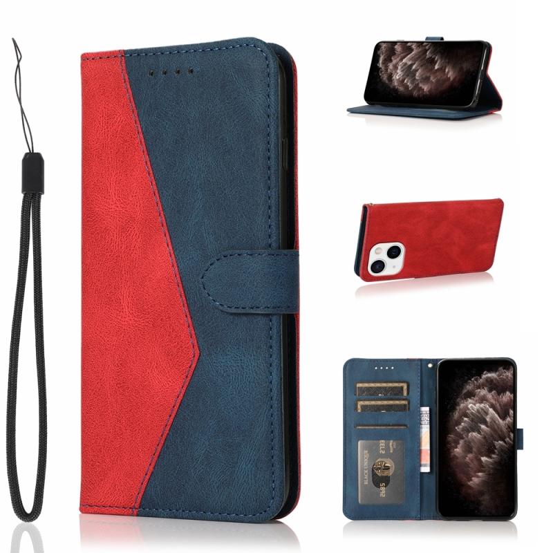 For iPhone 13 Dual-color Stitching Leather Phone Case(Red Blue)