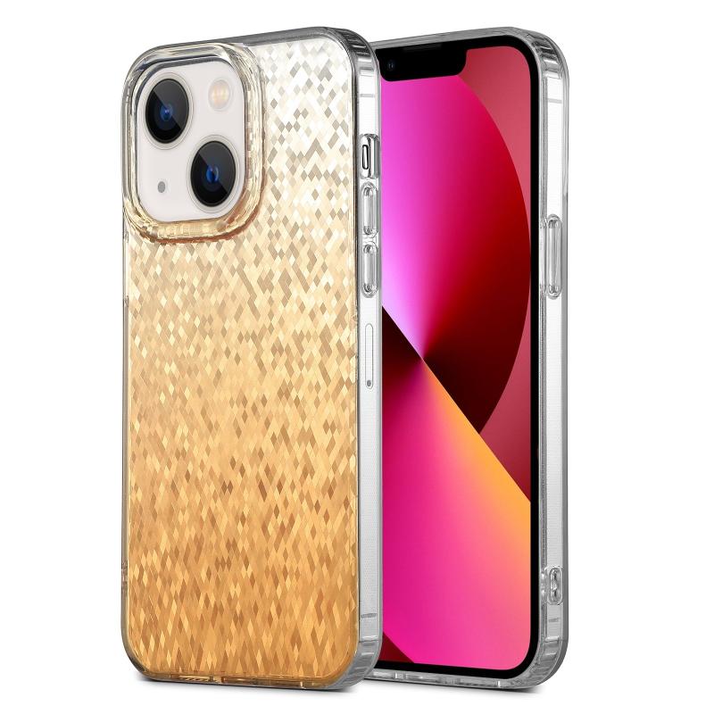 For iPhone 13 Dynamic Colorful Rhombus Diamond Series PC + TPU Phone Case(Gold)