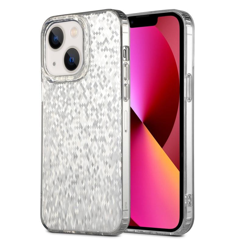 For iPhone 13 Dynamic Colorful Rhombus Diamond Series PC + TPU Phone Case(White)