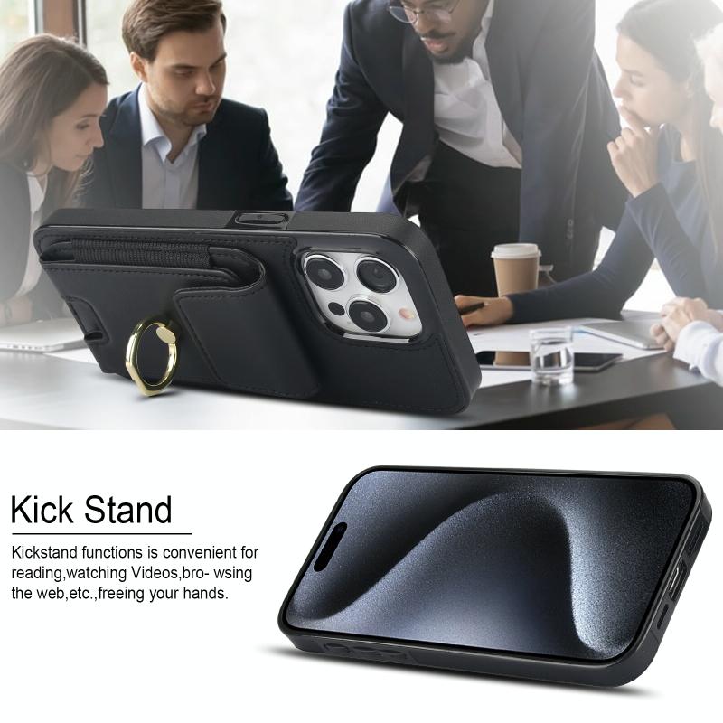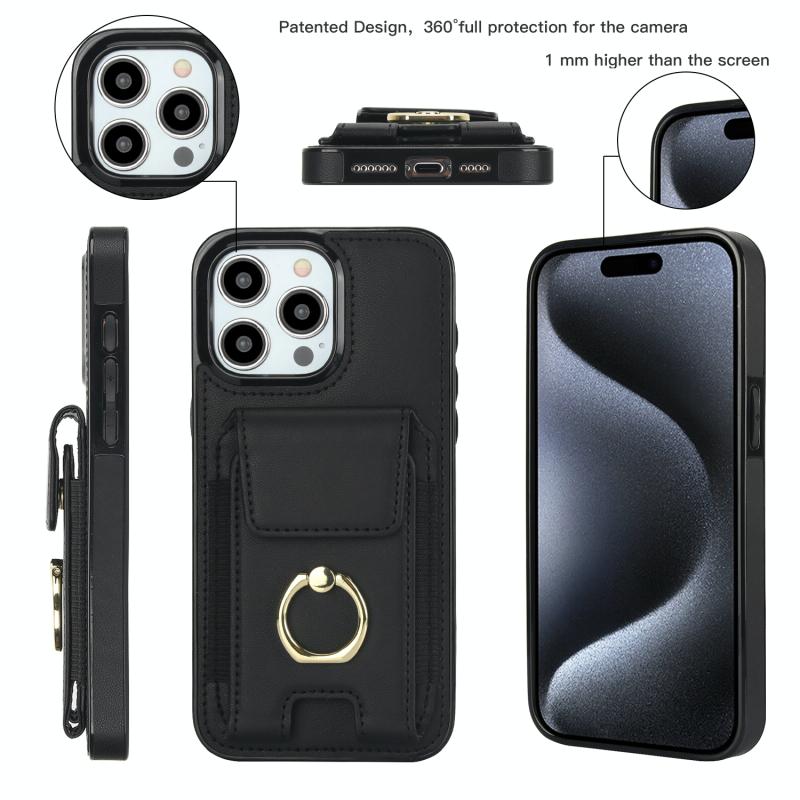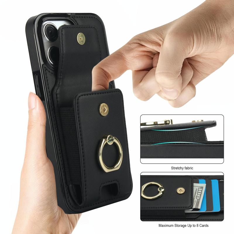 For iPhone 13 Elastic Card Bag Ring Holder Phone Case(Black)