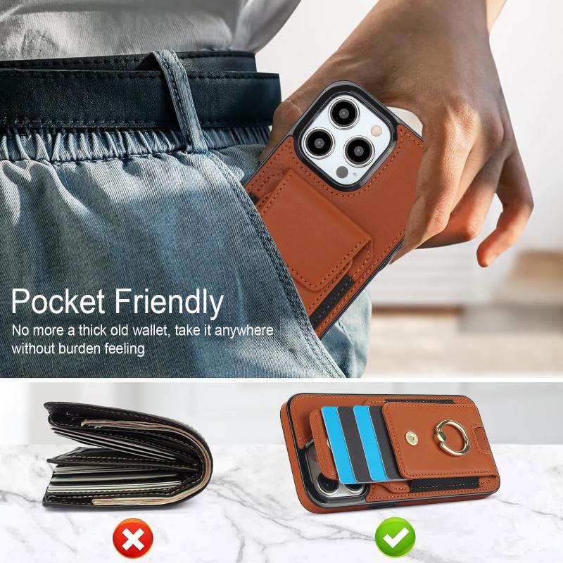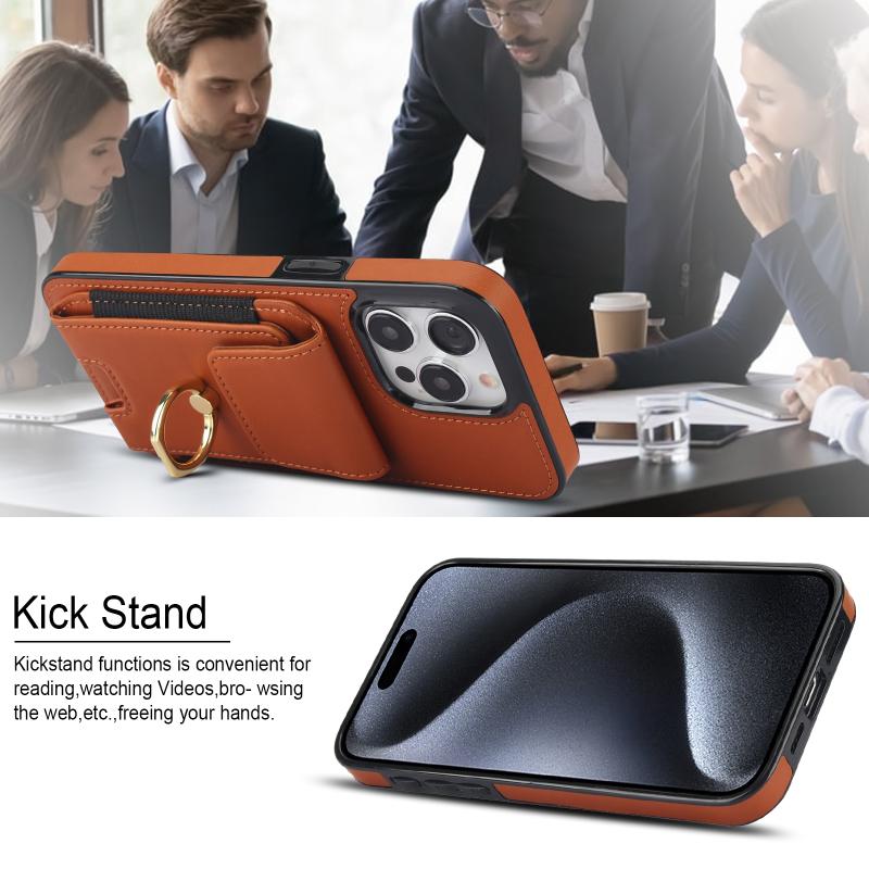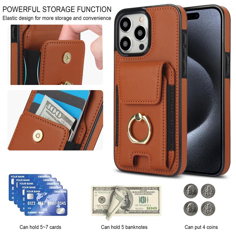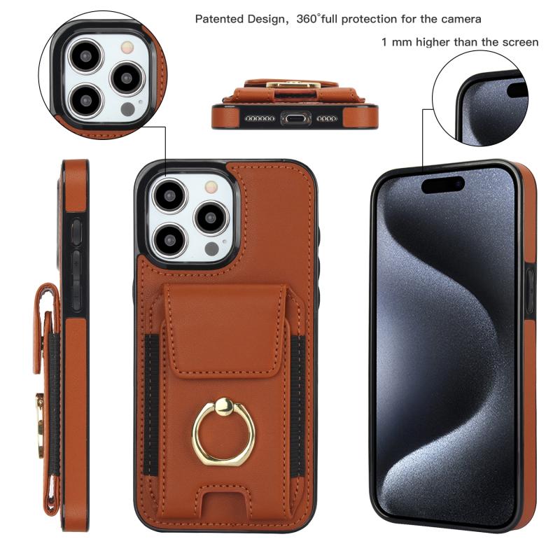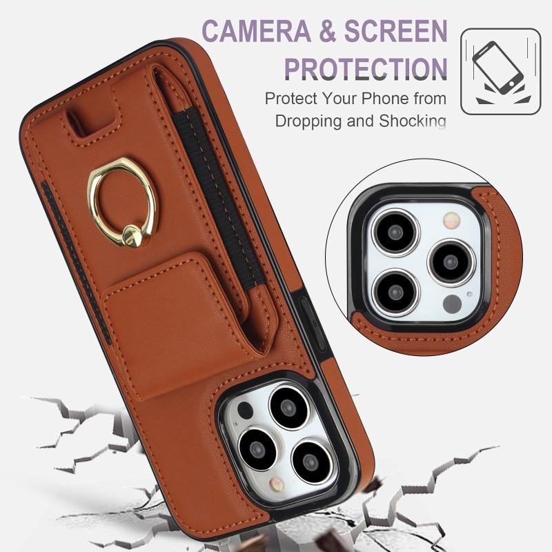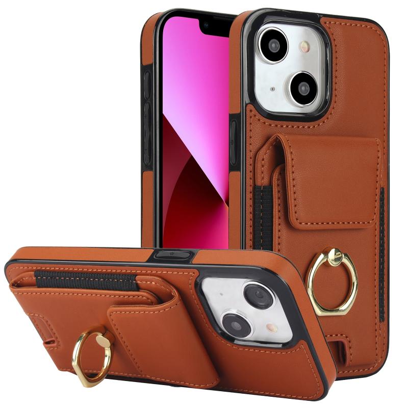 For iPhone 13 Elastic Card Bag Ring Holder Phone Case(Brown)
