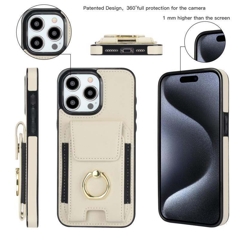 For iPhone 13 Elastic Card Bag Ring Holder Phone Case(White)