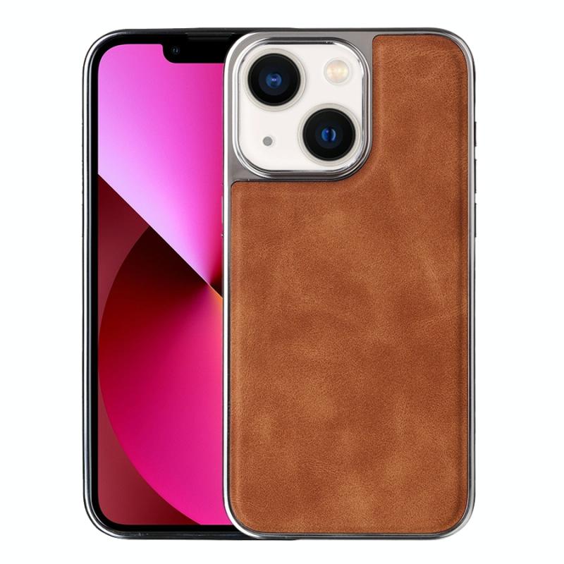 For iPhone 13 Electroplated Side PU Hybrid TPU MagSafe Phone Case(Brown)