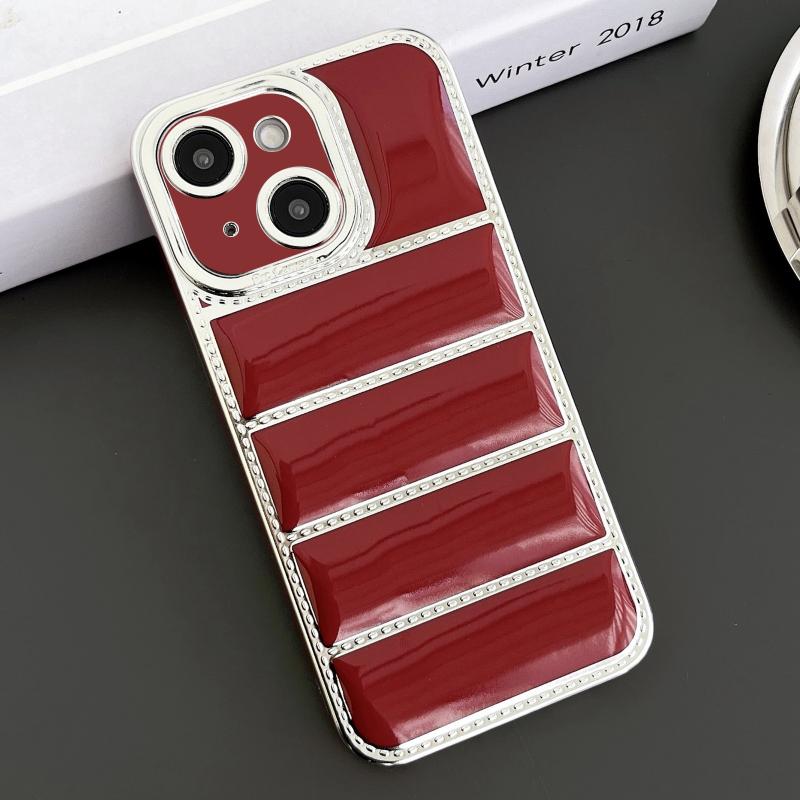 For iPhone 13 Electroplated Silver Edge Eiderdown TPU Phone Case(Red)