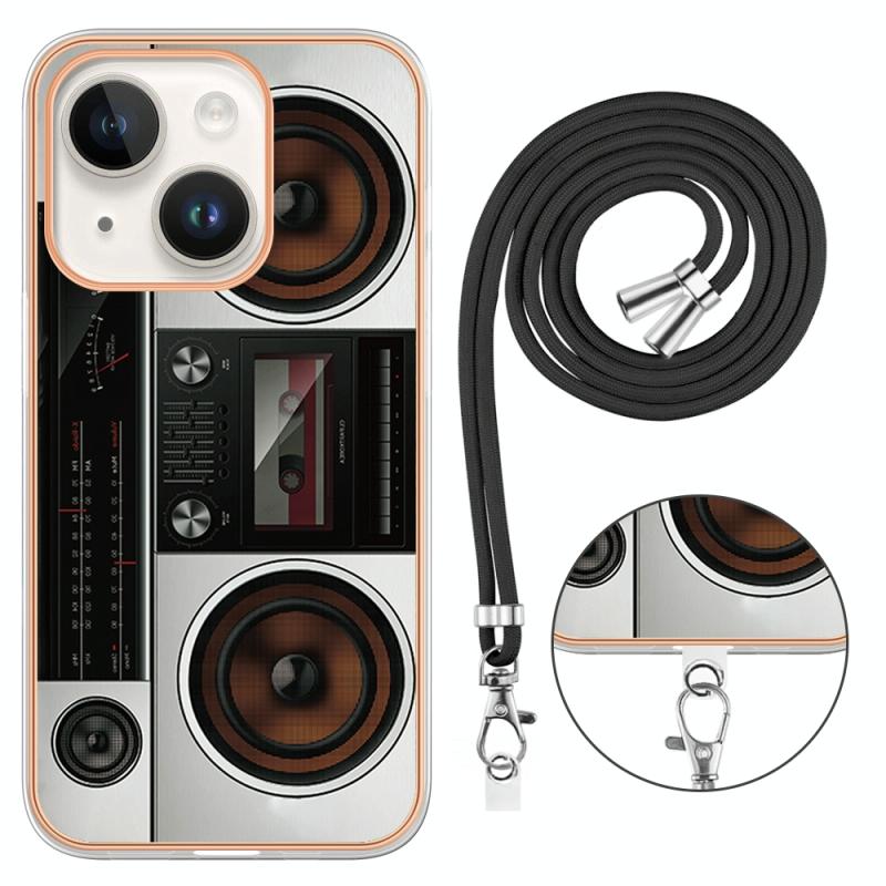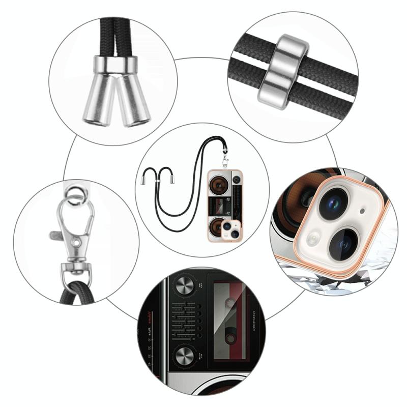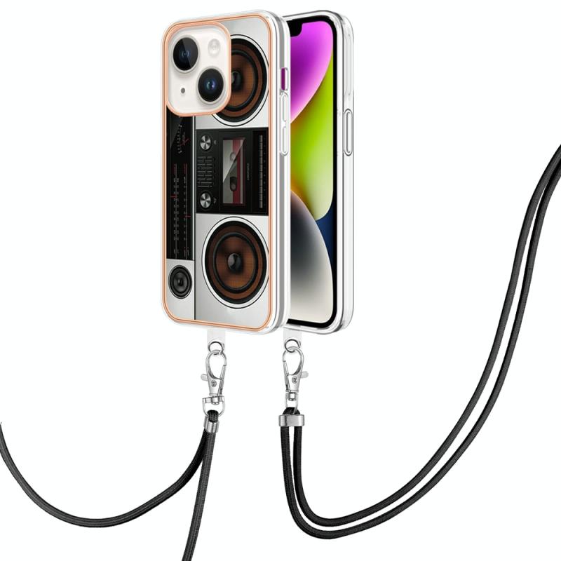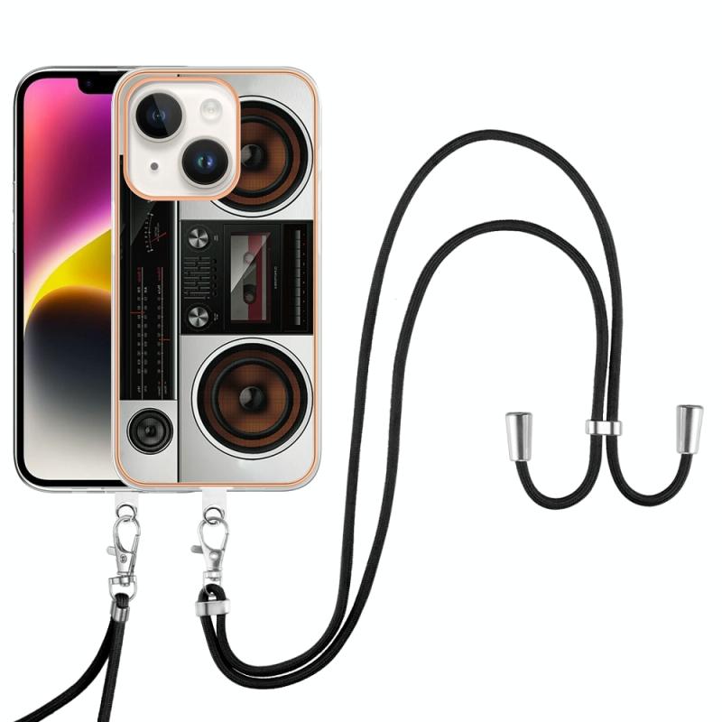 For iPhone 13 Electroplating Dual-side IMD Phone Case with Lanyard(Retro Radio)