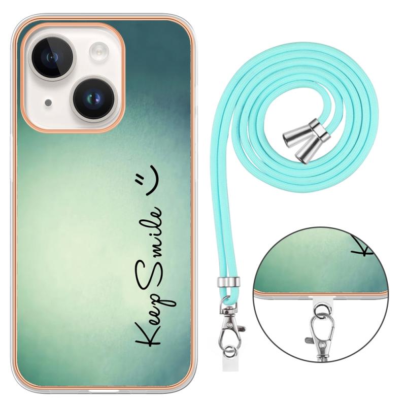 For iPhone 13 Electroplating Dual-side IMD Phone Case with Lanyard(Smile)