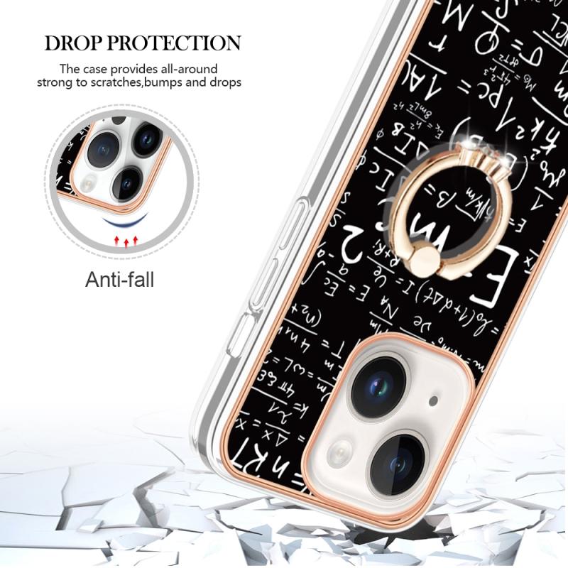 For iPhone 13 Electroplating Dual-side IMD Phone Case with Ring Holder(Equation)