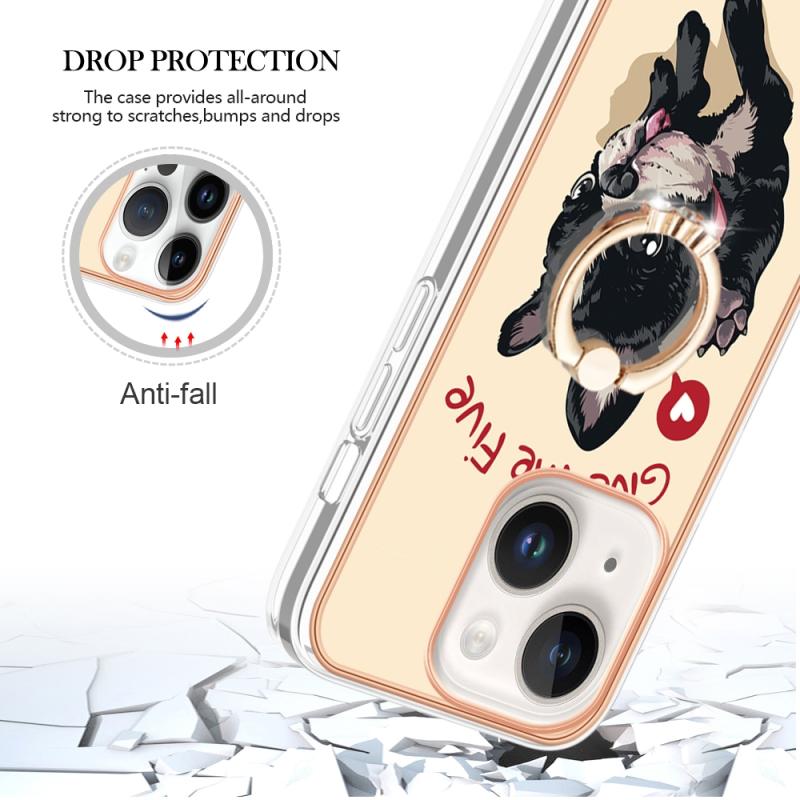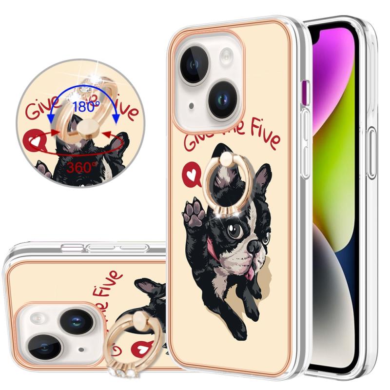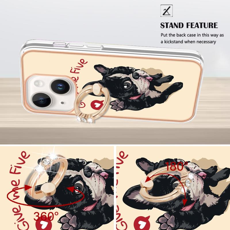 For iPhone 13 Electroplating Dual-side IMD Phone Case with Ring Holder(Lucky Dog)