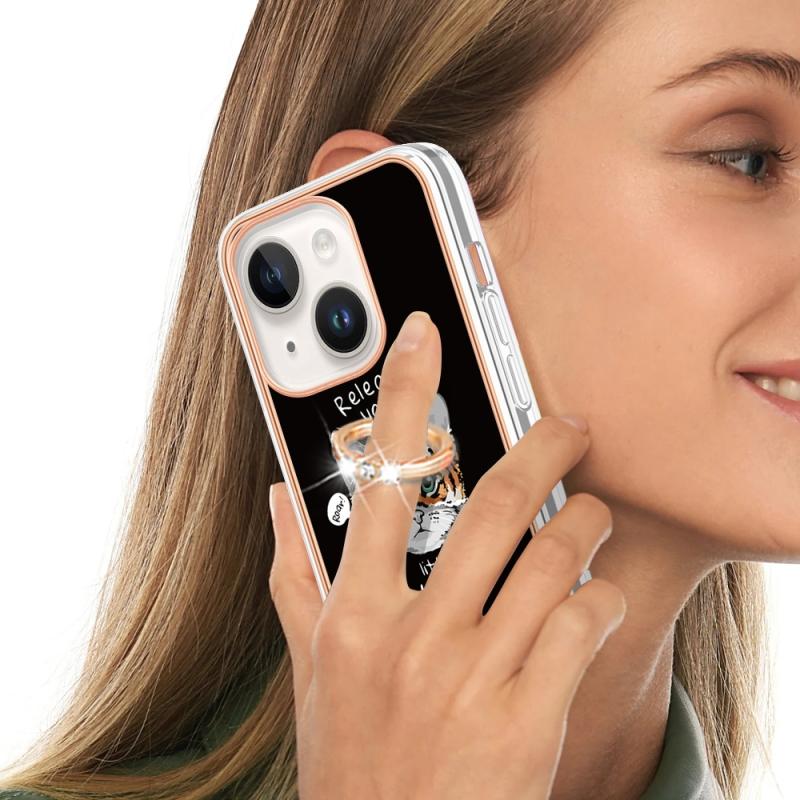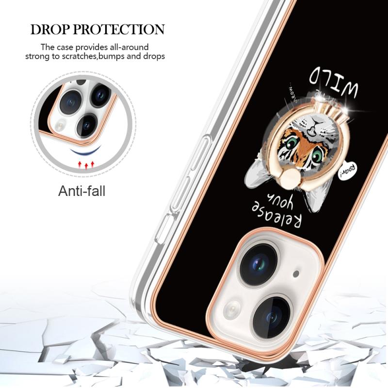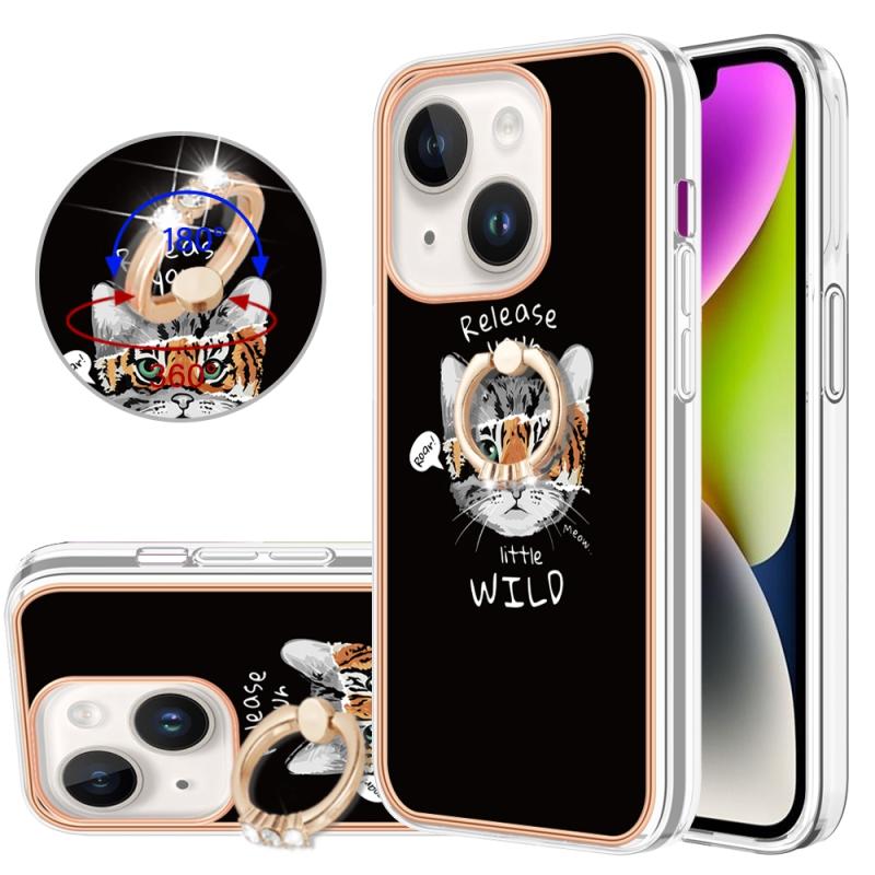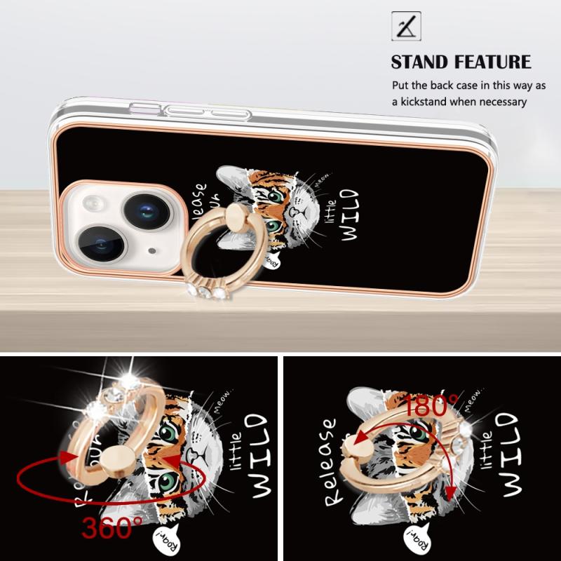 For iPhone 13 Electroplating Dual-side IMD Phone Case with Ring Holder(Natural Growth)
