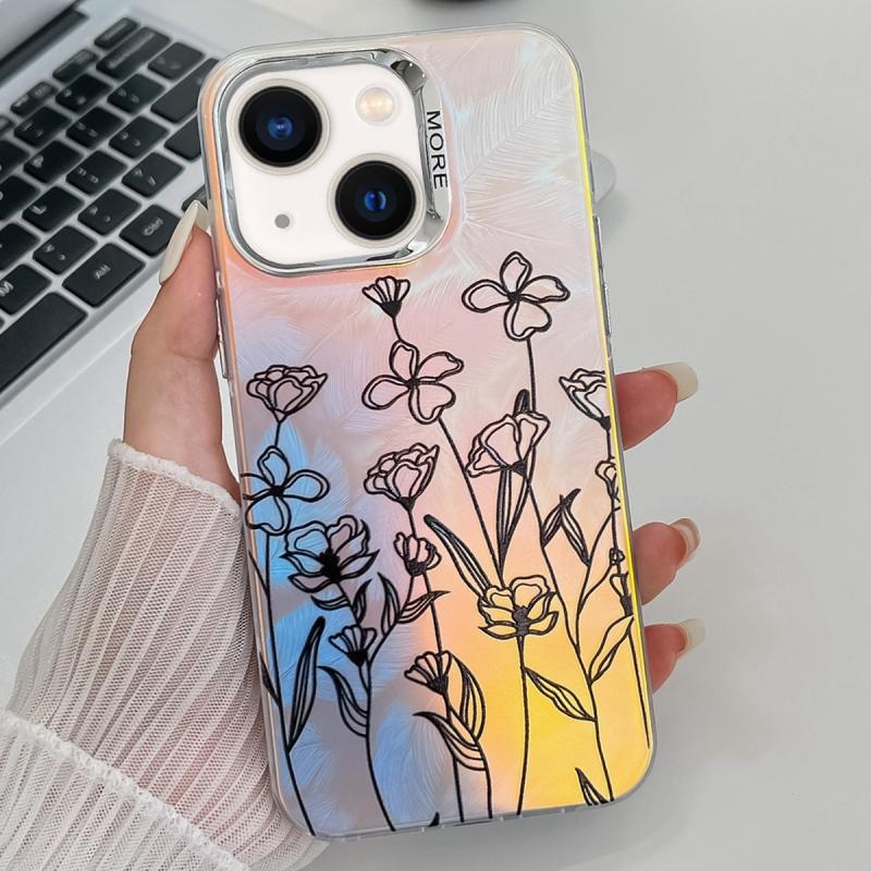 For iPhone 13 Electroplating Laser Flower Texture TPU Phone Case(Drawn Flowers AH3)